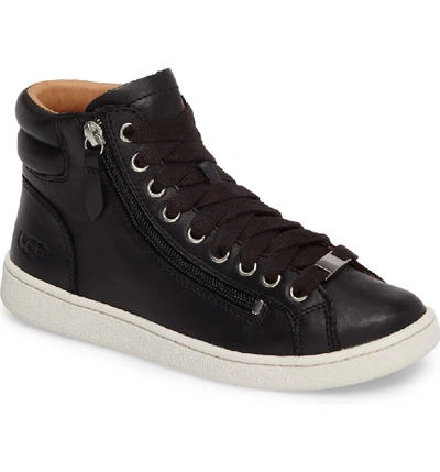 UGG Shoes Womens 7 Olive High Top Sneakers Black Leather Lace Side Very well made.