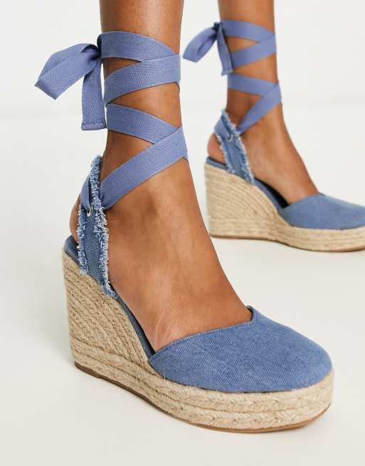 Stradivarius closed toe platform wedge in denim ASOS Very well made.