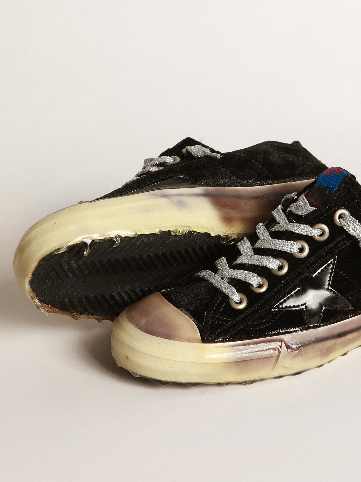 V Star LTD sneakers in black velvet with a black laminated leather star and heel tab Very well made.