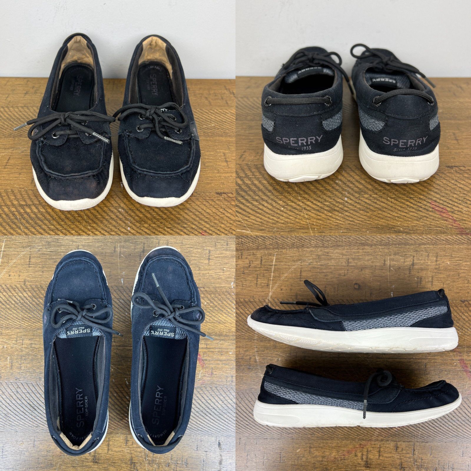 Sperry Top Sider Womens Rio Aqua Sneakers Shoes Black Lace Up Flat Heel 7.5M Very well made.