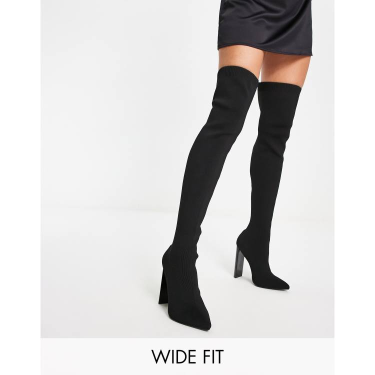 ASOS DESIGN Wide Fit Kylee high heeled knitted over the knee boots Very well made.