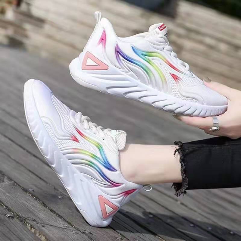 Fashion Boys Girls Sneakers Breathable Rainbow Soft Rubber Anti Slip Running Kids Sports Shoes Children Casual Mesh Tennis Shoes Very well made.