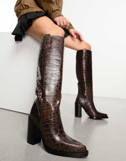 Bronx Mya mae heeled knee boot in brown croc leather Very well made.