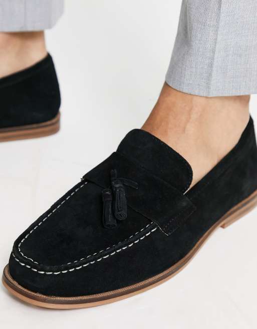 FINCHLEY Mens Black Suede Calf Tassel Loafer Very well made.