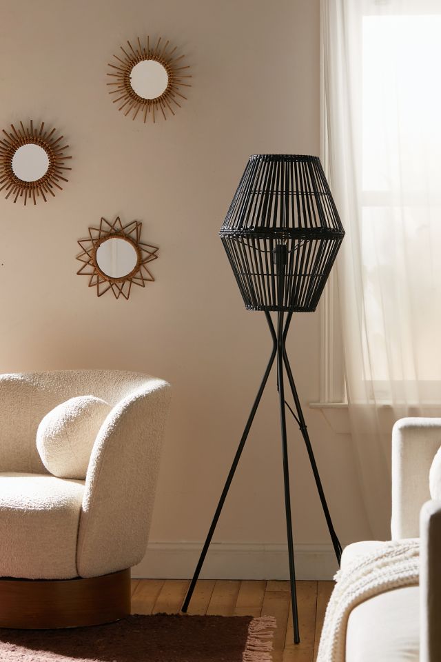 Rattan Diamond Tripod Floor Lamp Black Opalhouse for Sale in Very well made.