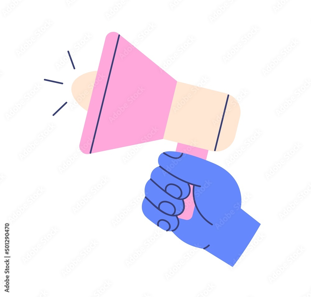 Hand holding loudspeaker for announcement. Megaphone loud speaker Very well made.