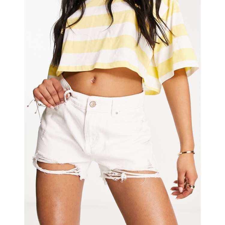 Only Pacy high waist ripped denim shorts in white Very well made.
