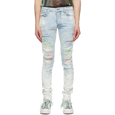 AMIRI Skinny Fit Distressed Embroidered Jeans Blue Amiri Very well made.