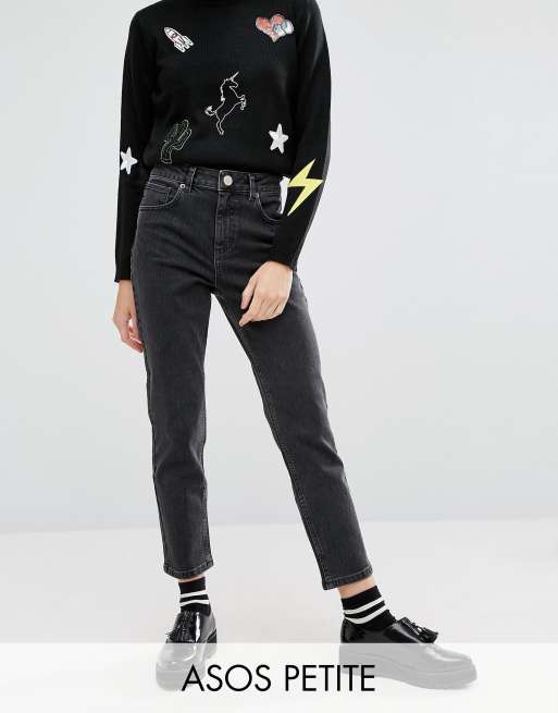 ASOS PETITE FARLEIGH High Waist Slim Mom Jeans in Washed Black with Bum Rips Very well made.