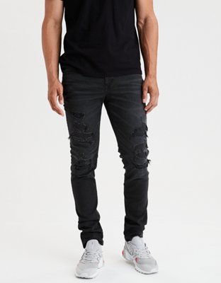 American Eagle Men Jeans Size 28x32 Skinny Distressed Patched Denim Black Jeans Very well made.