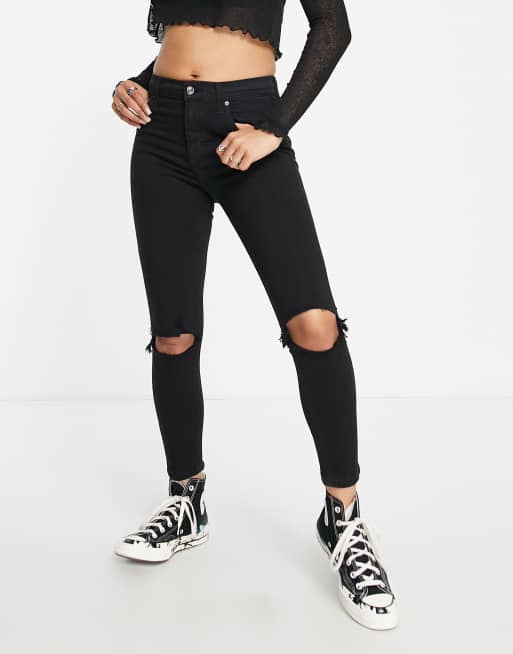 Topshop Petite Jamie jeans with knee rips in black Very well made.