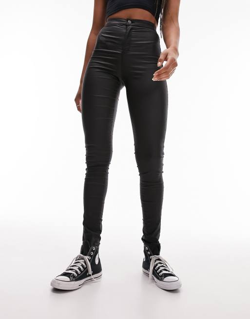 Topshop Tall coated Joni jeans in black Very well made.