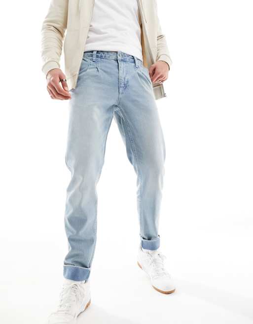 ASOS DESIGN classic rigid turn up jeans with pleats in mid blue Very well made.