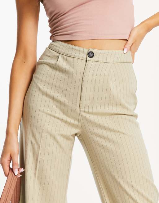 Pull Bear tailored wide leg trousers with front seam in beige pinstripe Very well made.