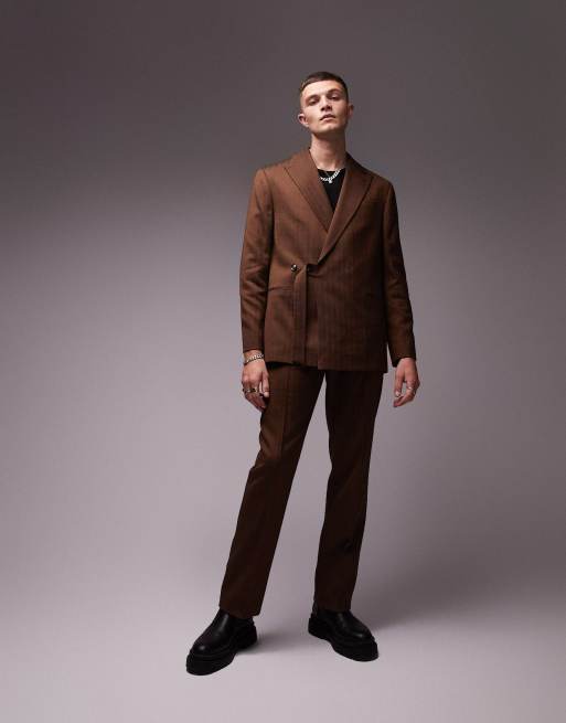 Topman straight wool mix herringbone suit trousers in brown Very well made.