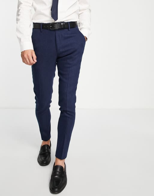 ASOS DESIGN wedding super skinny wool mix suit pants in navy Very well made.