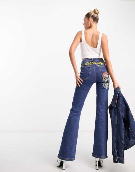 Ed Hardy flare fitted jeans with bum logo Very well made.
