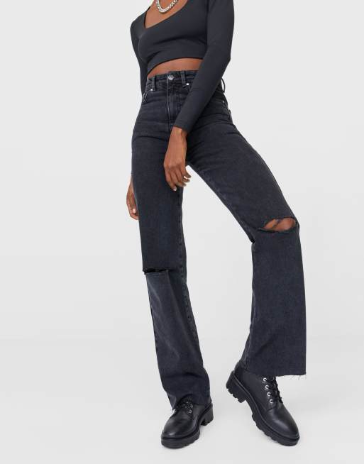 Stradivarius 90s dad ripped jean in washed black Very well made.