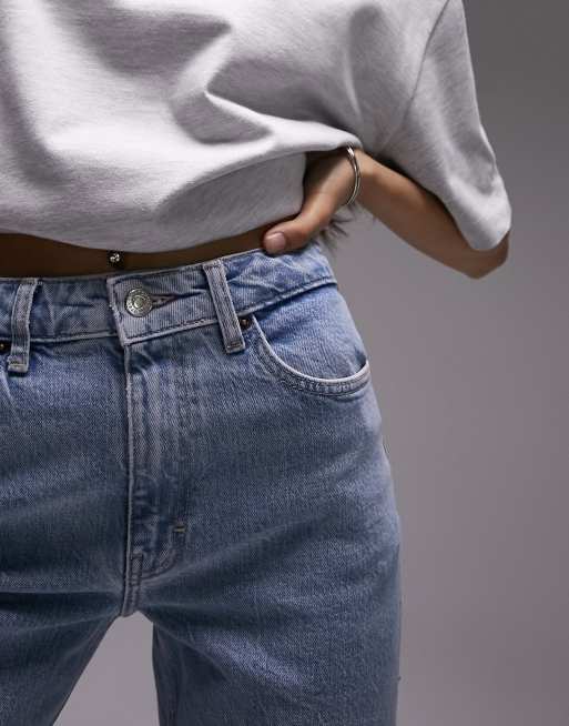 Topshop mid rise straight jeans with raw hem in bleach ASOS Very well made.