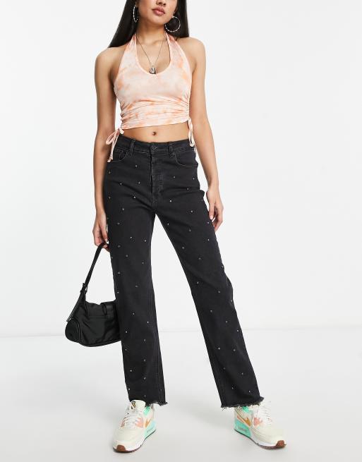 Signature 8 all over embellished straight leg jean in wash black Very well made.