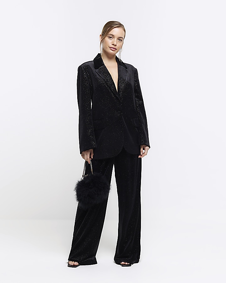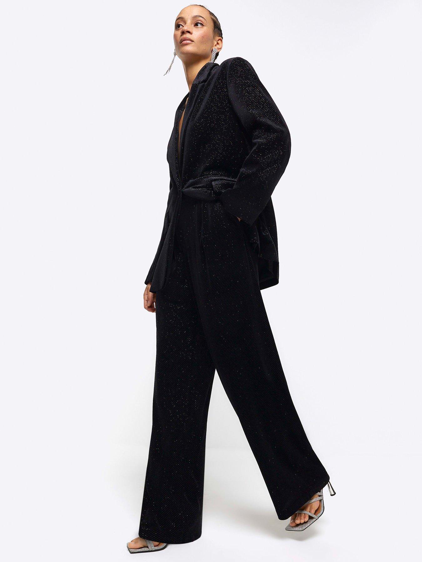 Petite black velvet sparkle slim trousers River Island Very well made.