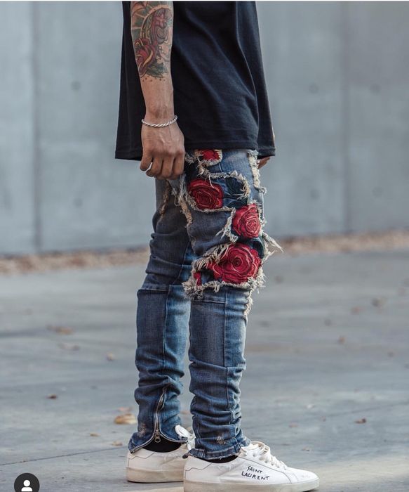 Golden Men s Union Madrid Rose Patch blue jeans Fashion pants Very well made.