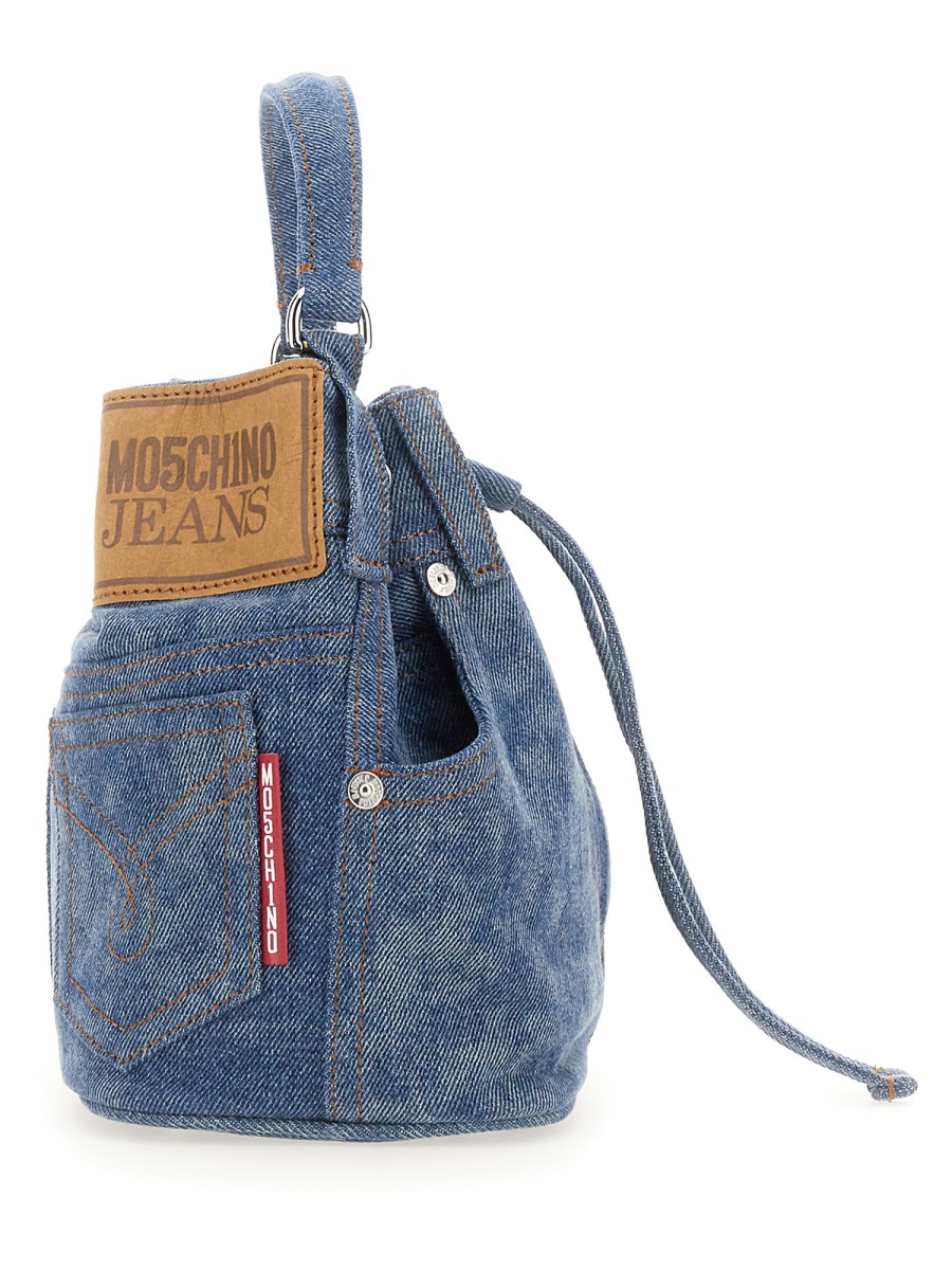 Moschino Brand patch Denim Bucket Bag in Blue Lyst Very well made.