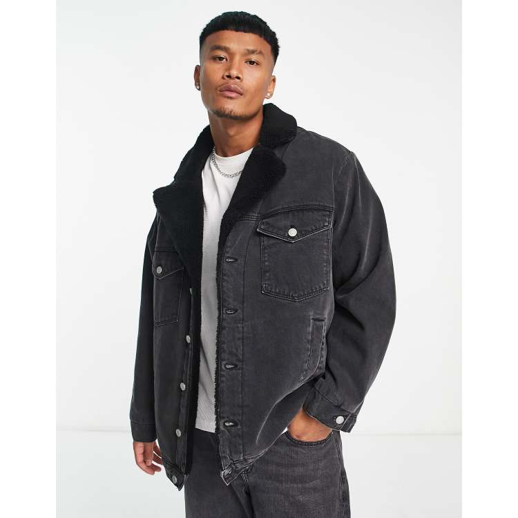 ASOS DESIGN oversized 70s denim jacket with borg lining in washed black Very well made.