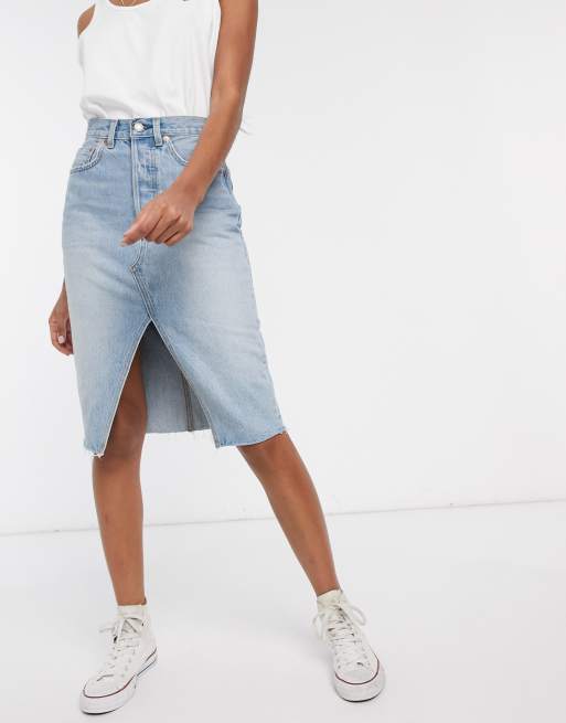 Levi s Deconstructed Midi Skirt With Side Split in Blue Lyst Very well made.