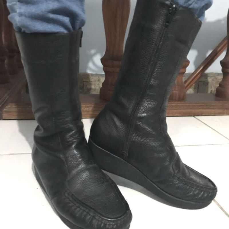 Bota Salto Bloco Bege Couro Cano Longo Loja Online Usaflex Very well made.