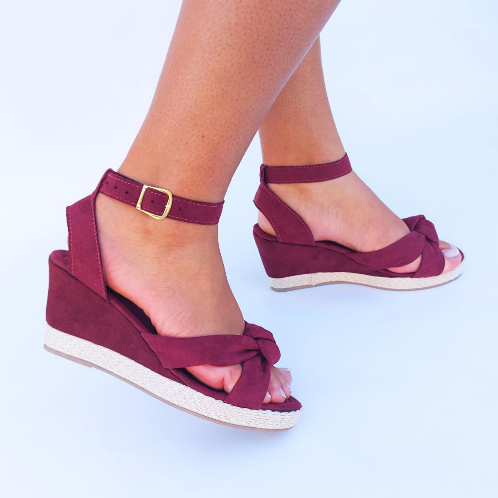 Sandalia Feminina Salto Anabela Marsala Peep Toe Corda Frete gr tis Very well made.