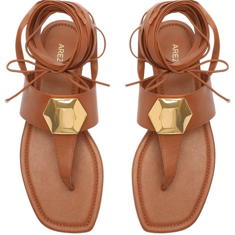 Rasteira Flat Tiras Metal Arezzo Caramelo Very well made.