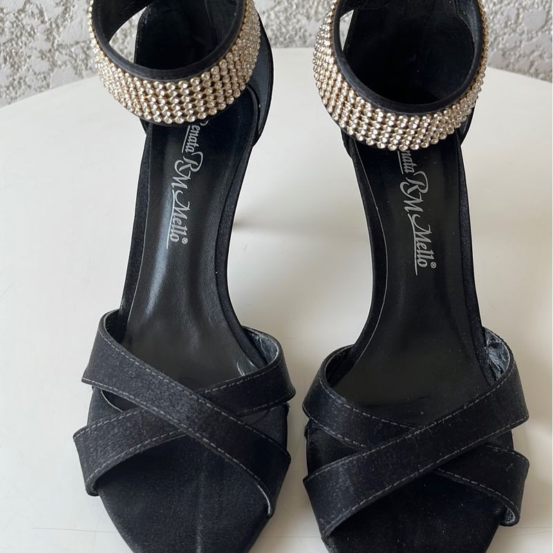 Sand lia Renata Mello Preta com Strass Salto M dio Sand lia Very well made.