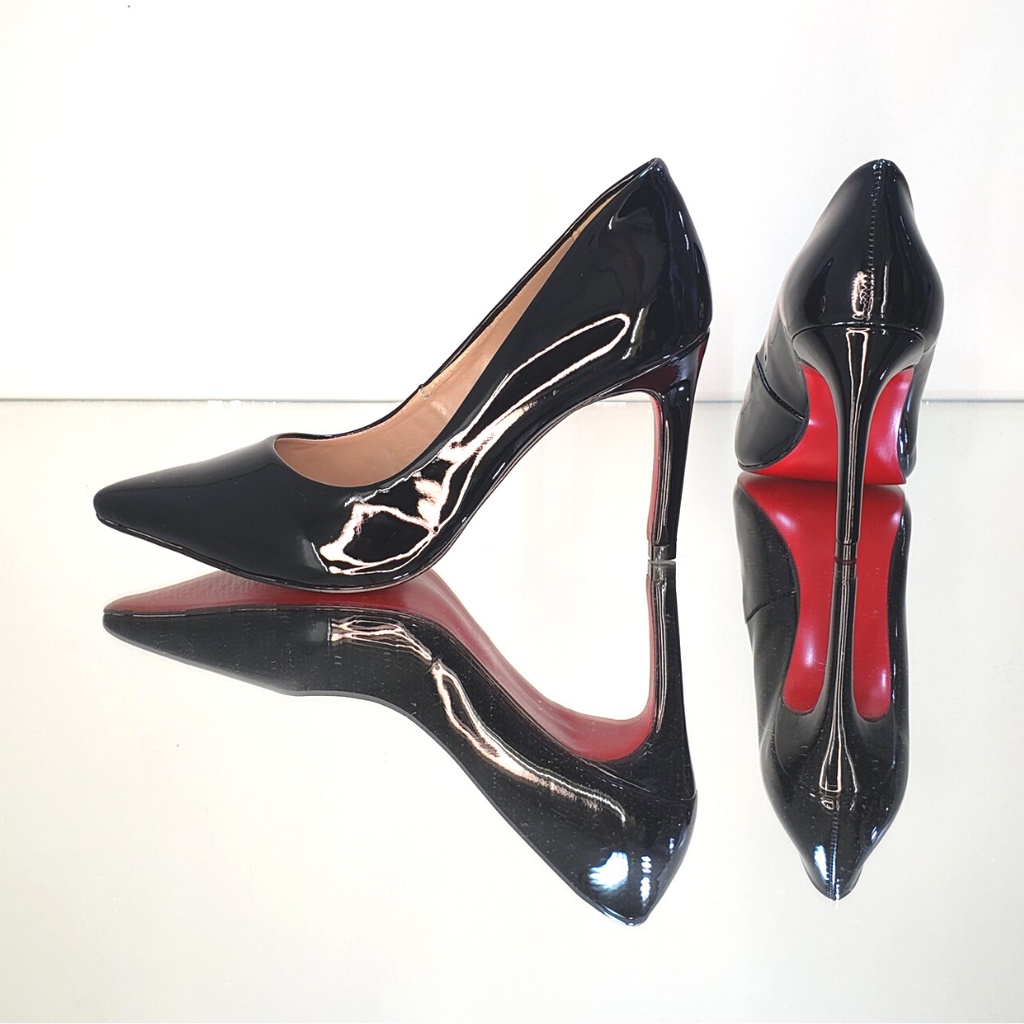 Scarpin preto verniz couro leg timo sola vermelha salto alto 10 cm Very well made.