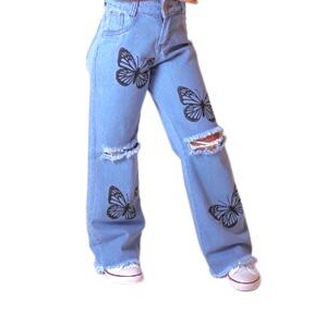 Cal a Jeans Wide Leg Destroyed Desenho borboleta Cora o Infantil Menina Very well made.