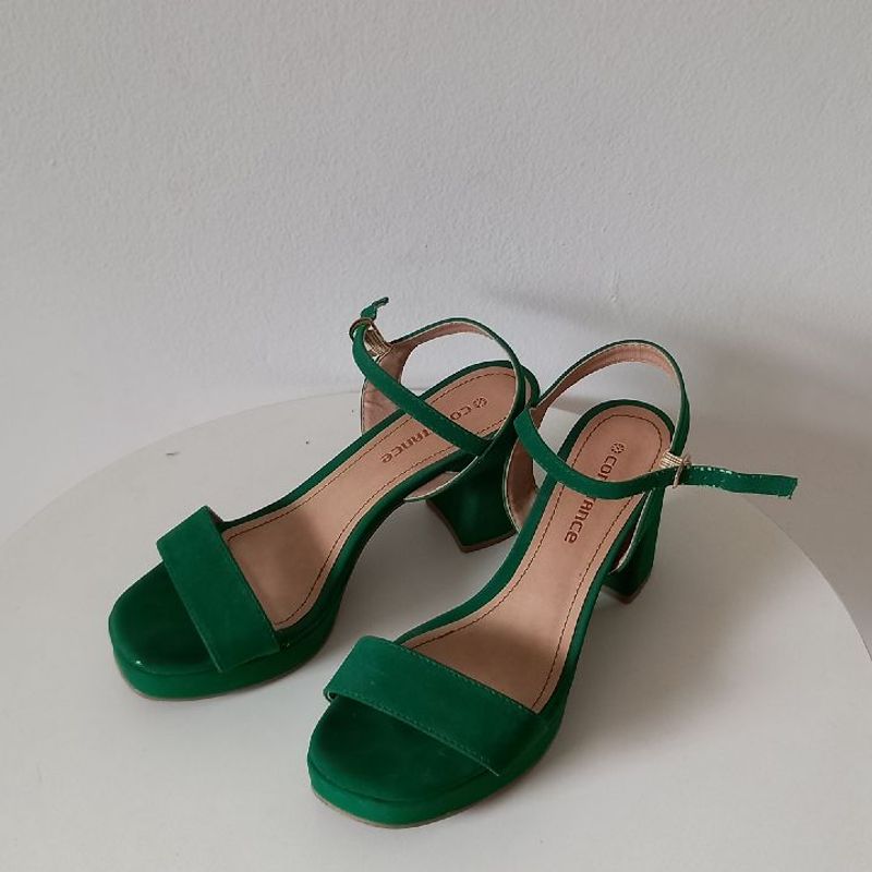 Sand lia Verde Salto Bloco Argola Tran ada Constance Cal ados Very well made.