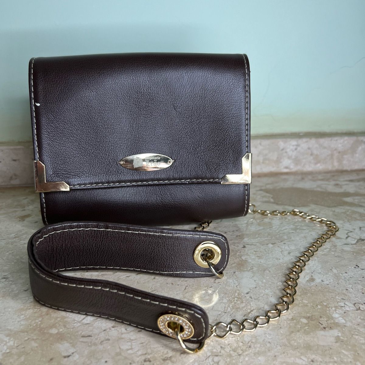 Bolsa Marrom Couro com Al a Dourada Bolsa de Ombro Feminina Very well made.