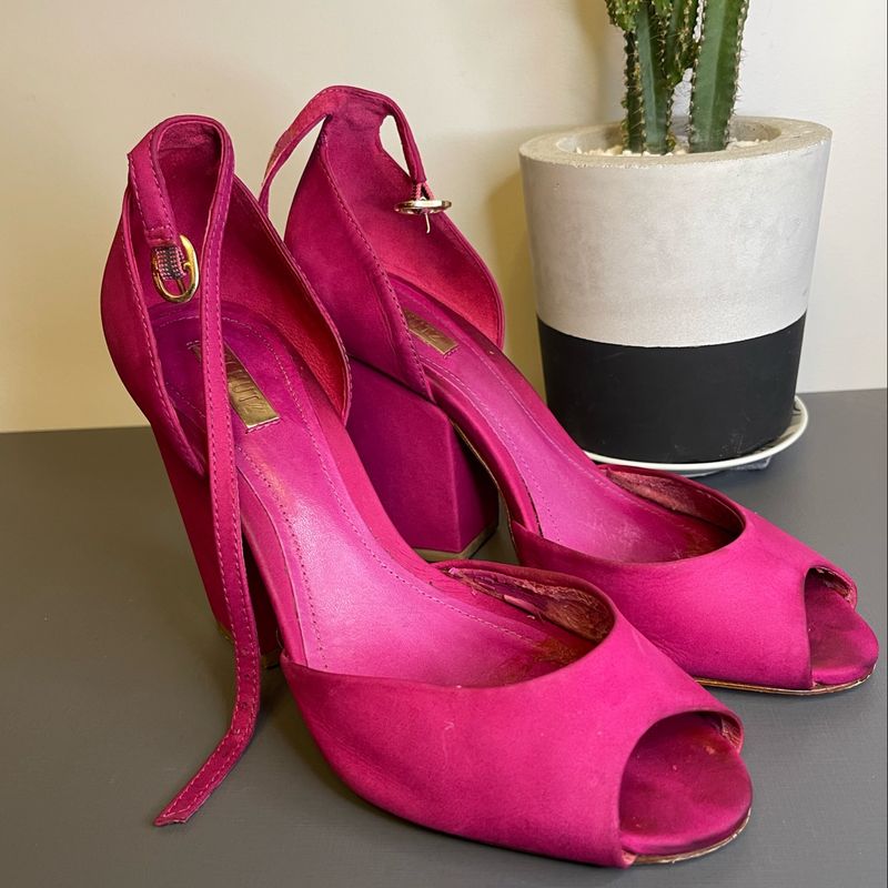 Schutz Sand lia Hannya Salto Fino Corrente Couro Neon Rosa Very well made.