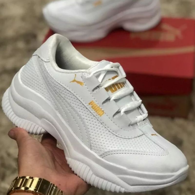 T nis Feminino Branco com Dourado Esportivo Tenis Feminino Very well made.