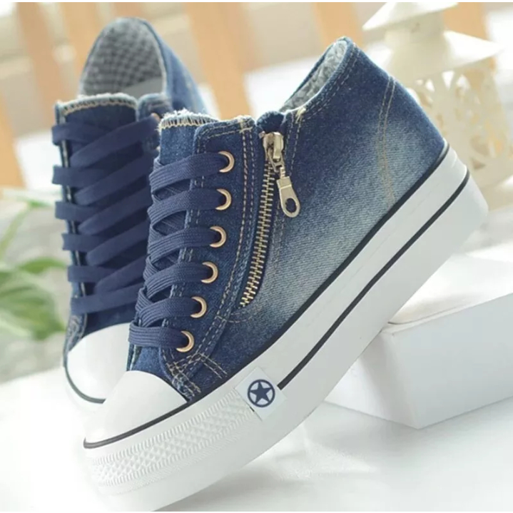 Tenis Casual Plataforma Jeans Feminino Love Star Com Ziper Very well made.