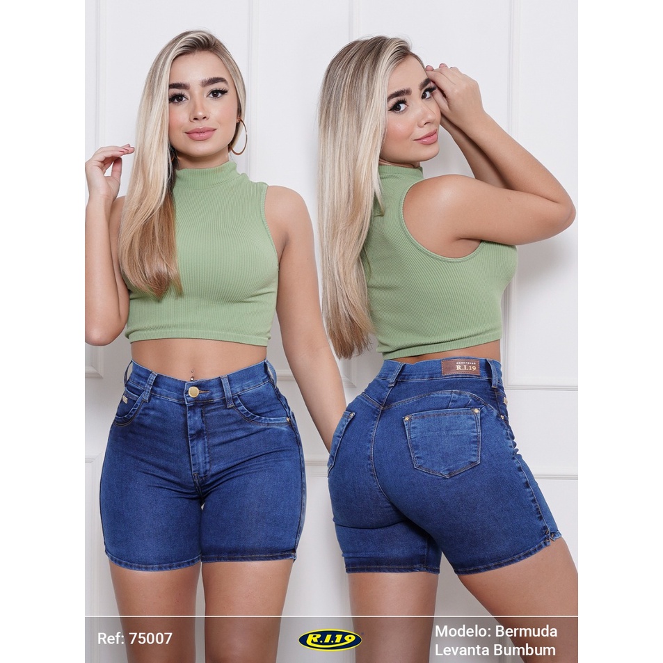 Bermuda Feminina Meia Coxa Ri19 Cintura Alta Lan amento Jeans Very well made.