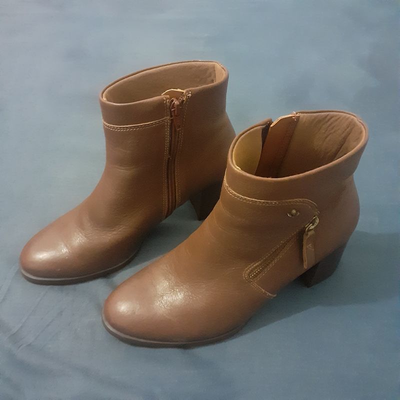 Bota Ankle Boot Cravo Canela Couro Salto Grosso Detalhe Fivela Very well made.