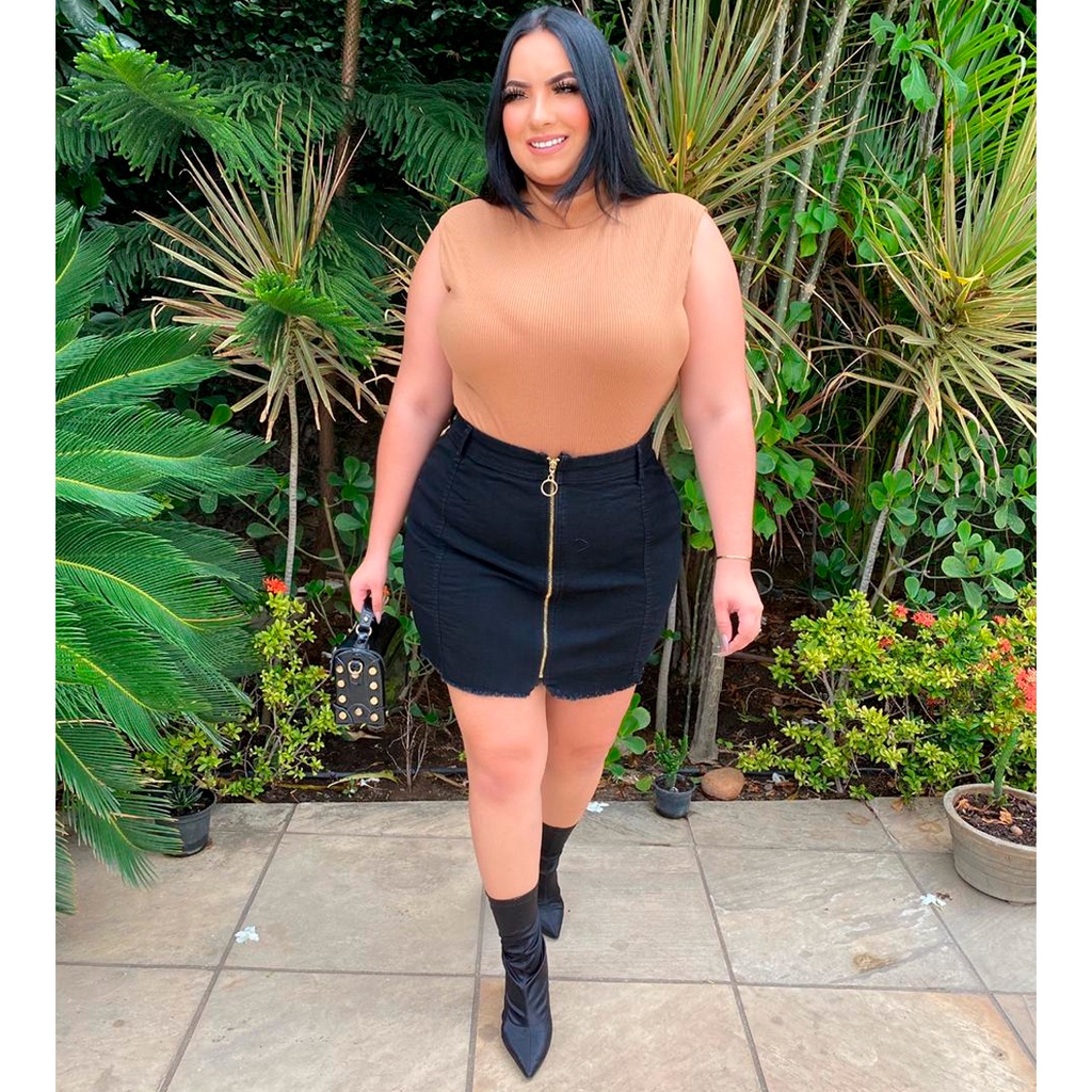 Saia Jeans Plus Size Coragem USE MIA PLUS Very well made.