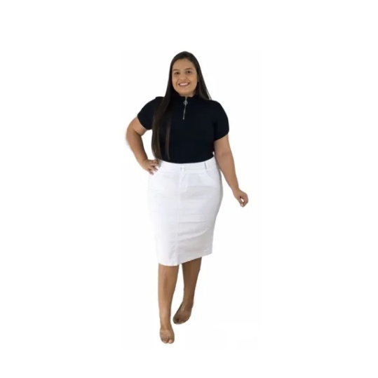 Saia Plus Size Branca Jeans C lycra 46 Ao 54 Moda Evang lica Very well made.