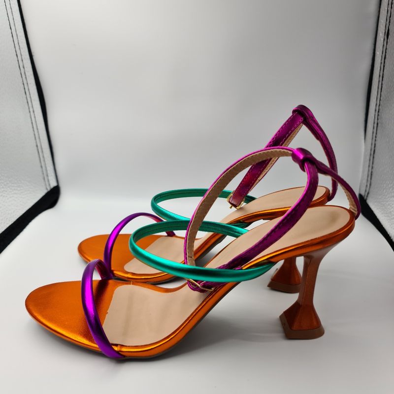 Sand lia Fem Salto Alto Tiras Coloridas Metalizada Amarra o Very well made.