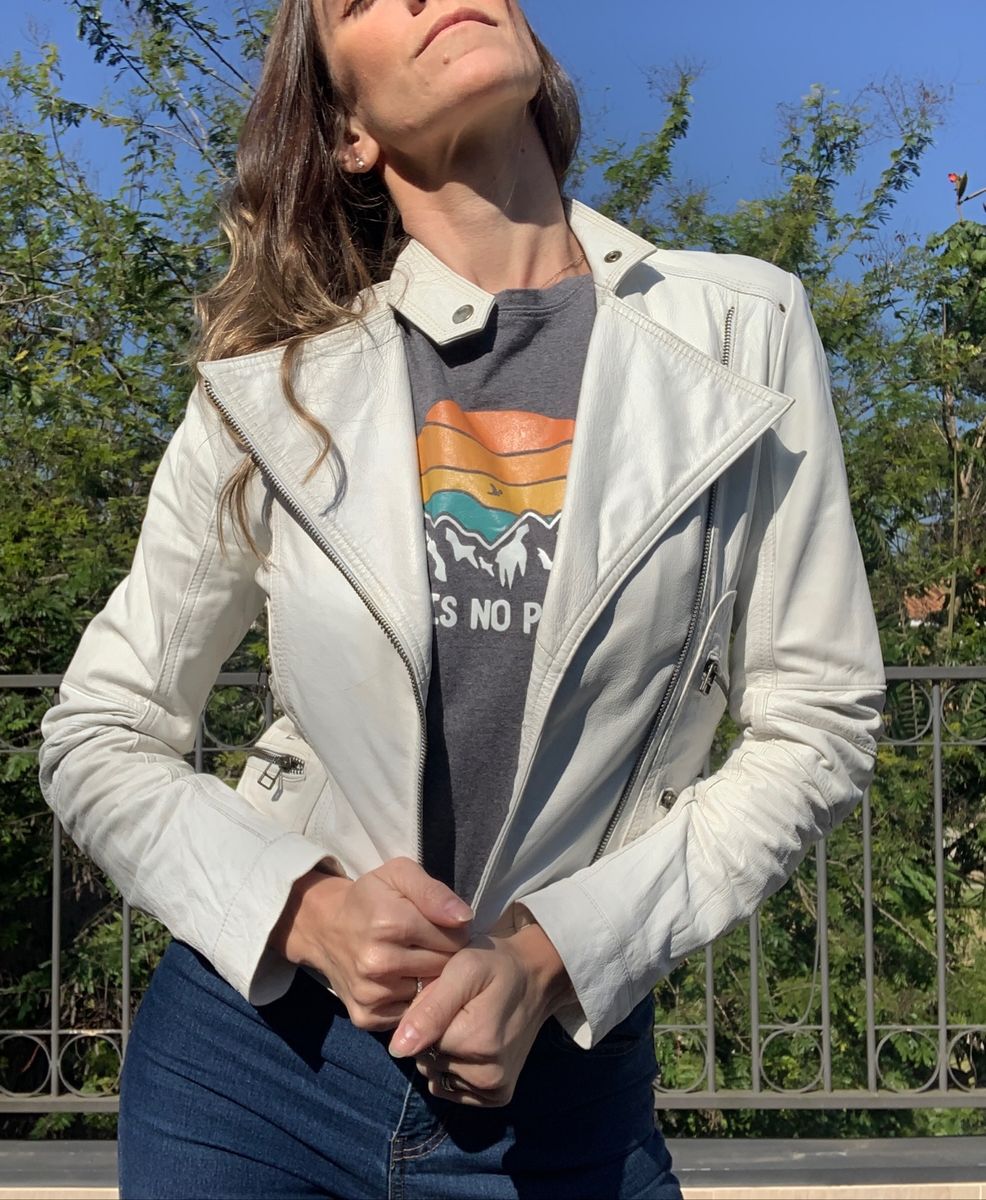 jaqueta branca feminina com cal a rasgada Leather jacket outfits Very well made.