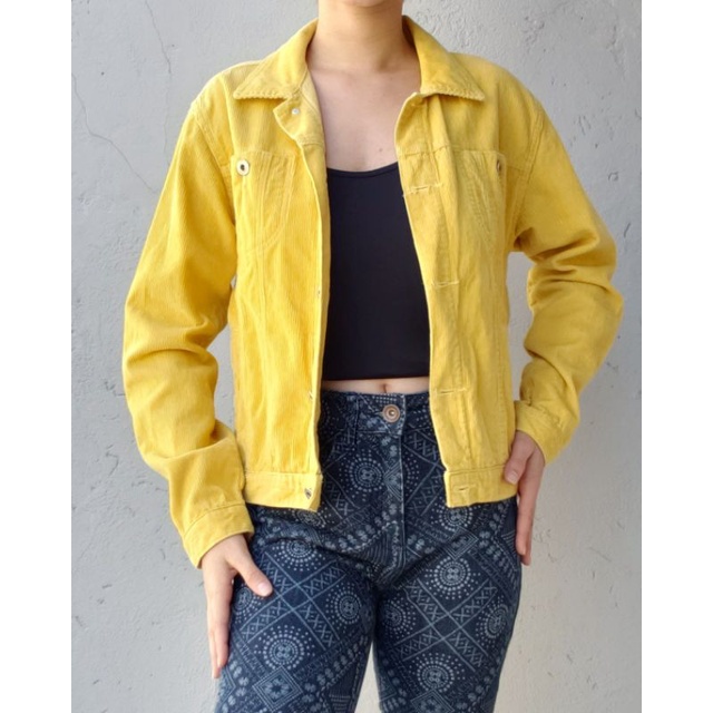 Jaqueta jeans amarela 100 algod o Brech Shopee Brasil Very well made.