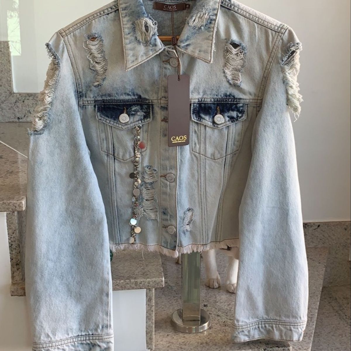Jaqueta Jeans Caos Bordada Maravilhosa Casaco Feminino Caos Very well made.