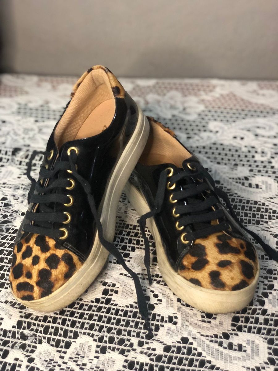 T nis Feminino Plataforma Preto Oncinha 34 T nis Feminino Very well made.