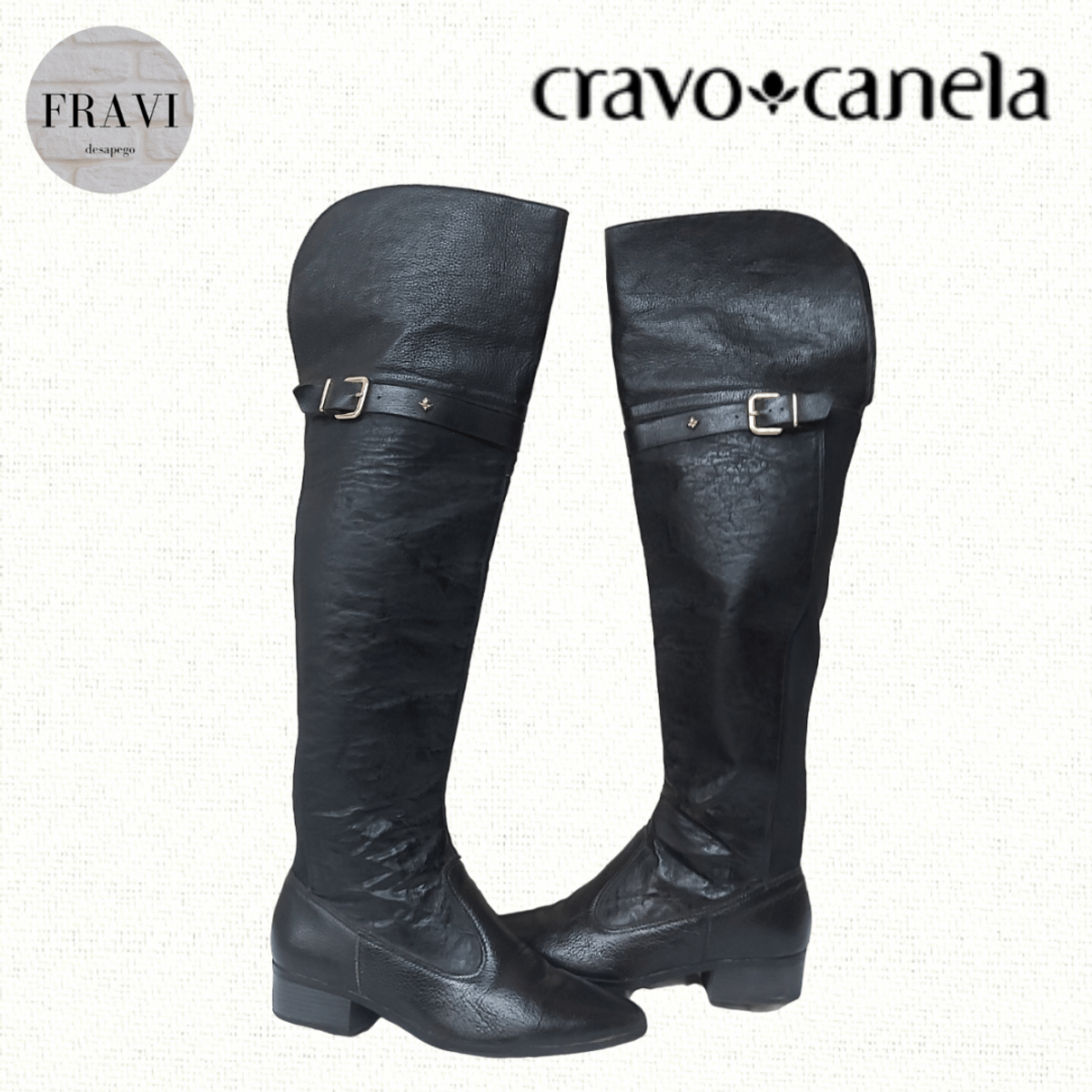 Bota Cano Longo Over Knee Preta Couro Bico Fino Cravo e Canela 35 Very well made.